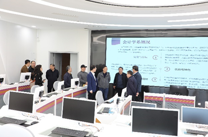 党委书记杨昌锐等院领导带领王春超经理一行参观了公司金融实验室、云共享财务实验室、智慧教室、数字化档案室和活动室,双方围绕大数据、云计算、VR等新技术在党建、教学中的融合进行了交流探讨。