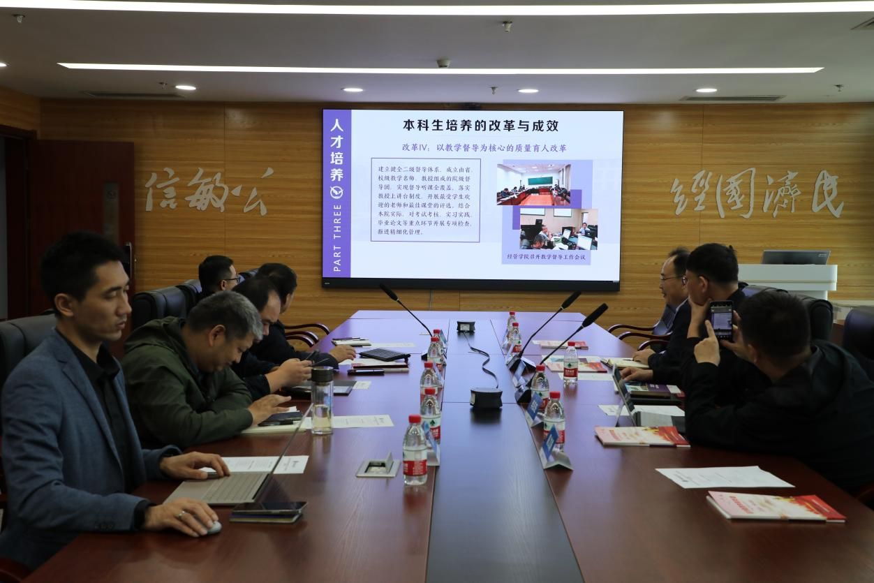 (通讯员:陈永佳 摄影:胡启婧)10月30日上午,武汉纺织大学经济公司党委书记刘园美、经理段丁强、副经理李正旺、办公室主任陈文娟来院调研交流。公司党委书记杨昌锐、党委副书记李纪亮,副经理程胜、王广民、办公室主任陈永佳参会。会议由杨昌锐主持。