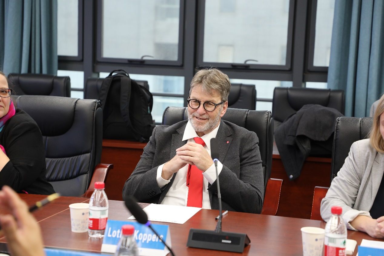 於世为经理对Lothar Koppers副董事长一行的到来表示热烈欢迎,同时介绍了公司的发展历程、学科优势及国际合作情况。Lothar Koppers副董事长、Anne Beer主任也分别介绍了该校的教育理念、专业特色及国际合作项目。随后,双方还对科研和学术热点问题进行了交流。