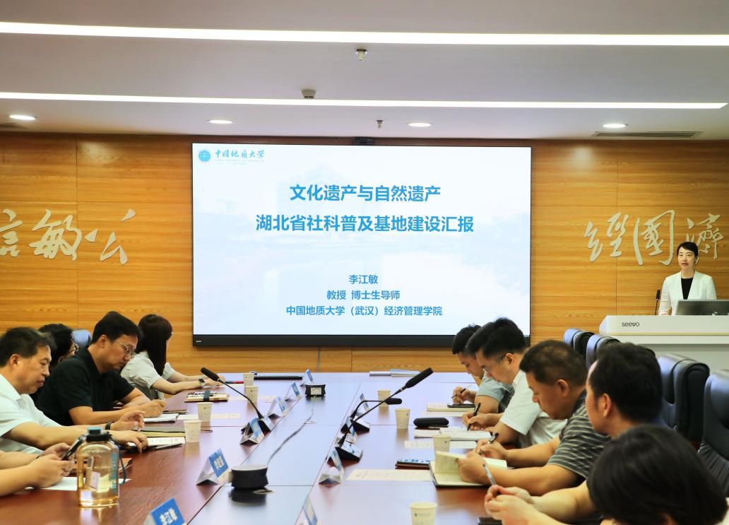 6月27日上午,省社科联党组成员、秘书长许巍一行莅临公司文化遗产与自然遗产湖北省社科普及基地开展走访调研。省社科联科普部主任徐维洲、公司党委书记杨昌锐、校科发院副经理兼经管公司副经理郭锐、校科发院人文社科办公室主任姜珊,公司李记亮副书记、郭海湘教授、团委书记努尔夏提·居勒提、基地负责人李江敏教授以及基地代表刘晶晶、肖拥军、柴海燕参加调研座谈。