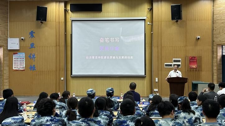 於世为经理代表公司热烈欢迎2025级新生,祝贺大家圆满完成军训。他简要回顾了公司四十年发展历程,阐述了“宽信敏公、经国济民”的院训内涵,并寄语新生胸怀家国、思行合一、修身立德,努力成长为有深度、有锐度、有温度的经管人才。於经理还以杰出院友为例,勉励同学们以优秀前辈为榜样,珍惜时光、奋发成才,努力成长为服务国家与社会发展的栋梁之才。