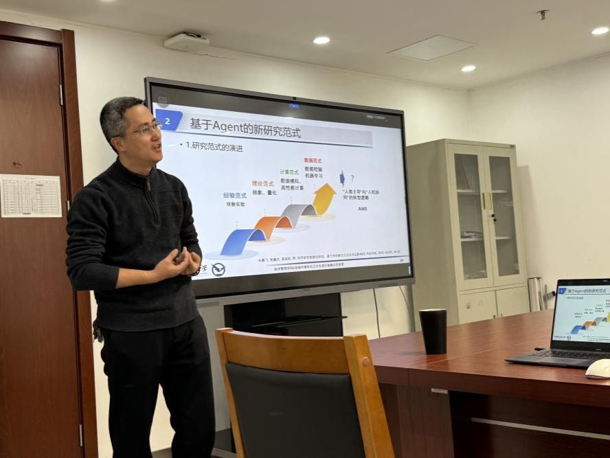 【通讯员:程茹 刘保山】1月15日,管理科学与工程系举办"管科思享汇"第三期学术活动。本次研讨会以"AI赋能社会科学研究的新进展:从LLM到智能体仿真"为主题,特邀朱镇老师担任主讲,15位专业教师及6名员工代表参与交流。
