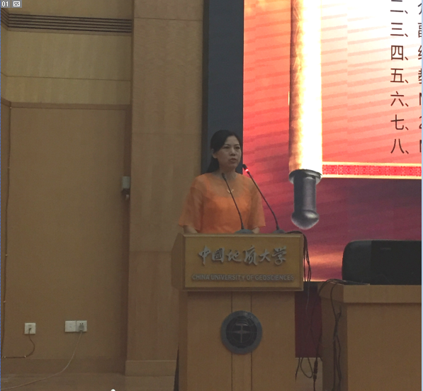 教师代表王萍老师讲话。王萍从组织行为学的专业角度,告诉同学们要做好以下几点:一是要做到人与组织的匹配;二是加强“五项修炼”;三是积极探索创新和创业。最后,王萍老师向全体新生发出号召,希望大家在地大的校园里学有所成、学有所获。