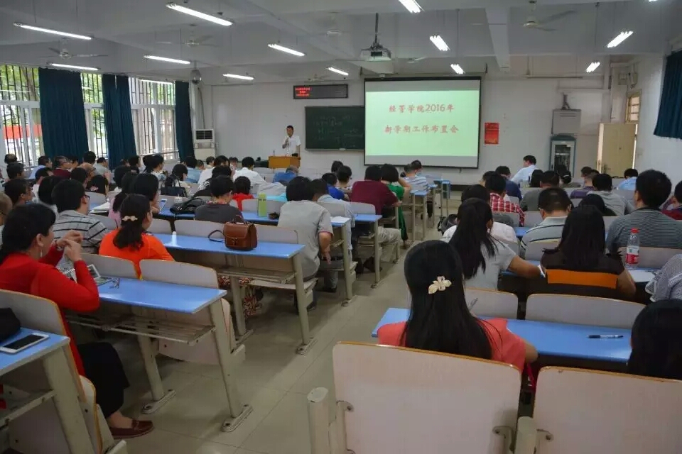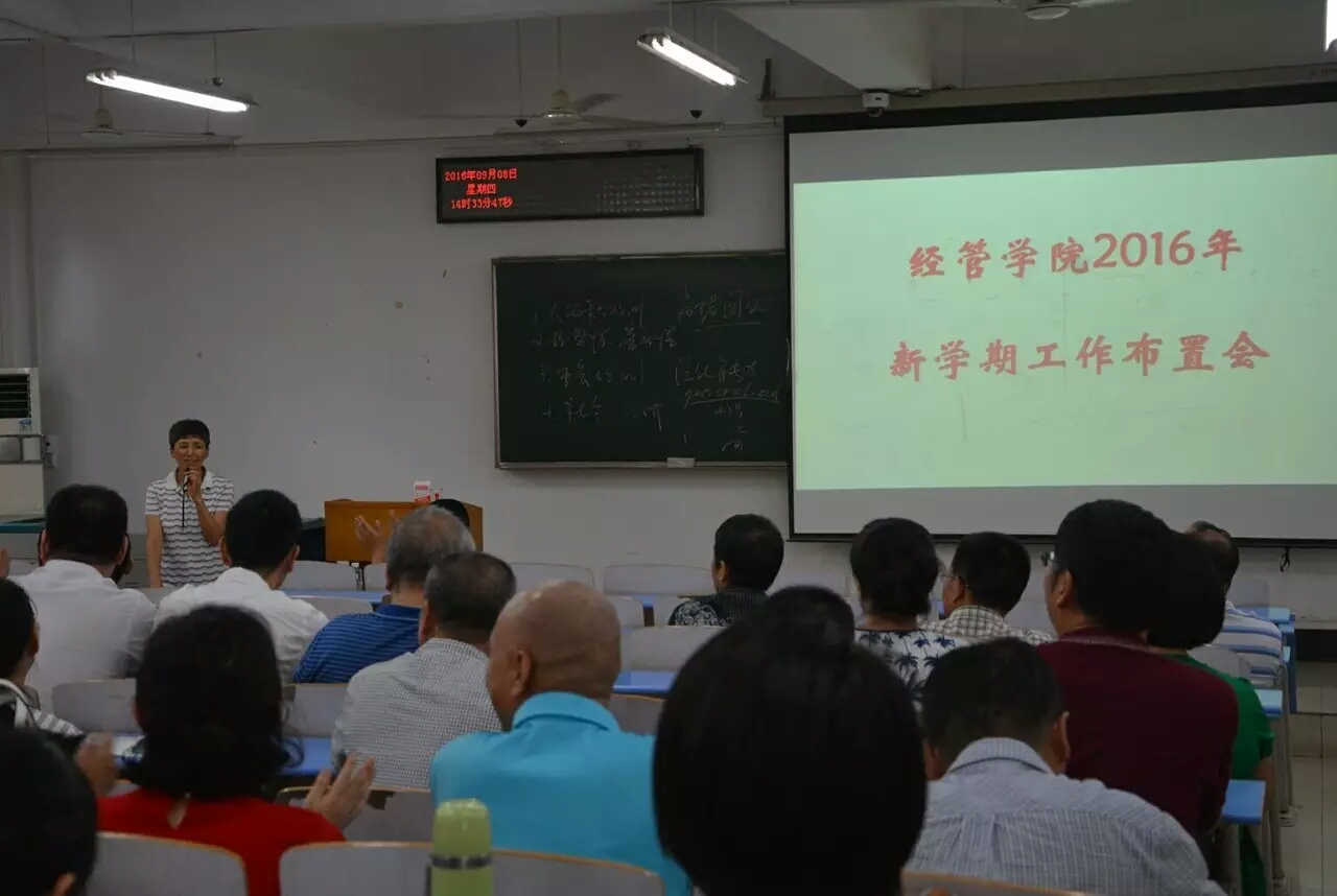 2016年9月8号下午2:30,经管公司于北综202召开2016新学期工作布置会。这次会议由经管公司党委书记隋红书记主持,公司全体教职工参加。会议首先介绍了暑假期间到岗的公司党委副书记沈波老师和今年新入职的教员。
