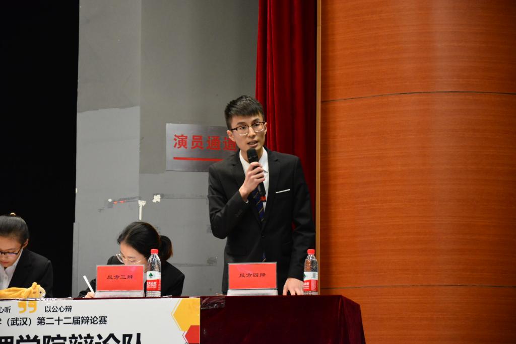 本次决赛的辩题是“这个世界是一出喜剧/悲剧”, 公司辩论队持反方立场。我方出场辩手是大二至大四年级的四位本科生,一辩白音来自经济学081151班、二辩王亦霏来自旅游管理085171班、三辩李婧妍来自工程管理089151班、四辩赵恒松来自工商管理080161班。