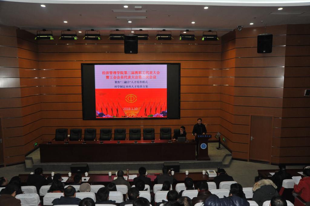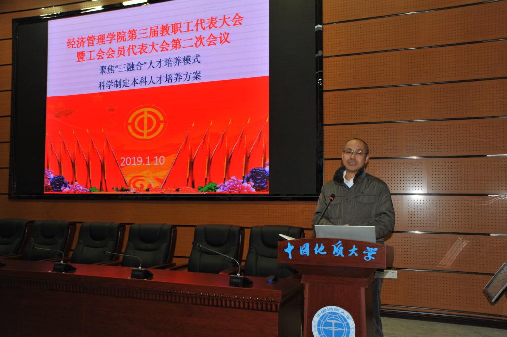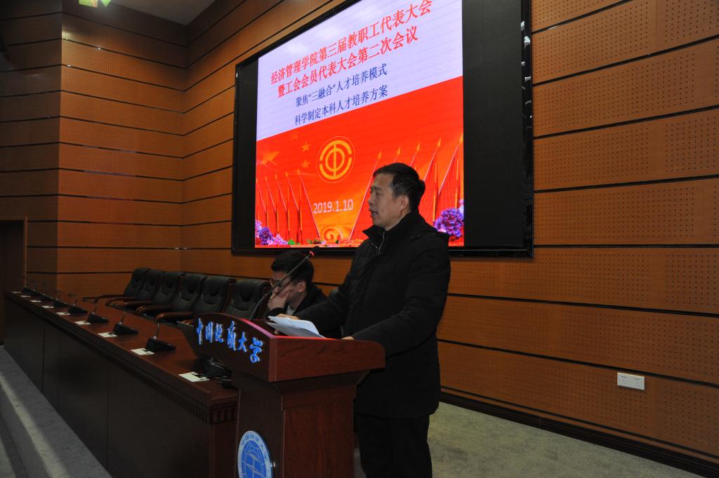 杨昌锐同志向大会报告了公司2018年文化建设情况,并重点介绍了新院训的征集凝炼历程,以及新院徽的征集、设计过程,解读了新确立的院训、院徽的内涵。各系主任先后代表各专业对2019本科人才培养方案的制定和特色、公司发展规划与管理的建议等进行了交流发言。