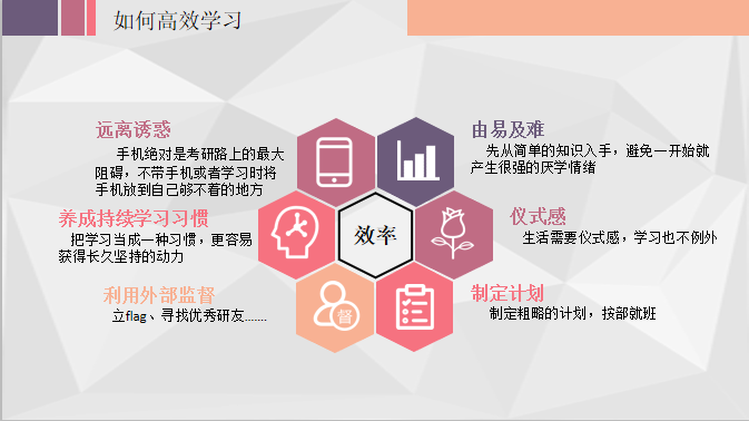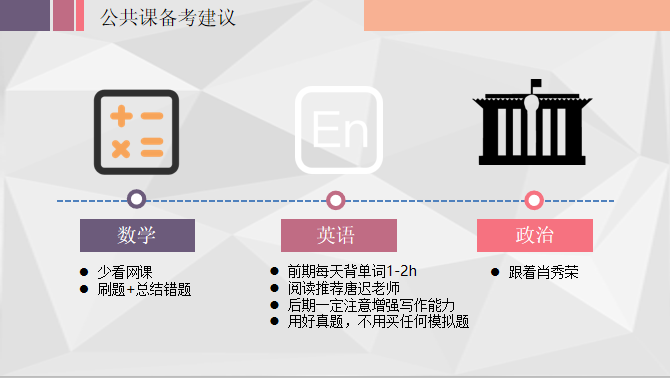 张国彬是公司信息管理与信息系统专业2016级本科生,刚刚经历完考研大战的他为同学们带来了考研初试经验分享。他建议同学们在充分了解报录比、分数线、招生人数等信息的基础上,综合考虑意向城市、个人能力与兴趣,选择目标院校和专业。结合自己的备考经历,张国彬给出了远离诱惑、由易及难、持续学习等六项高效学习的小技巧。对于数学、英语、政治的备考策略,张国彬也提出了自己的建议。