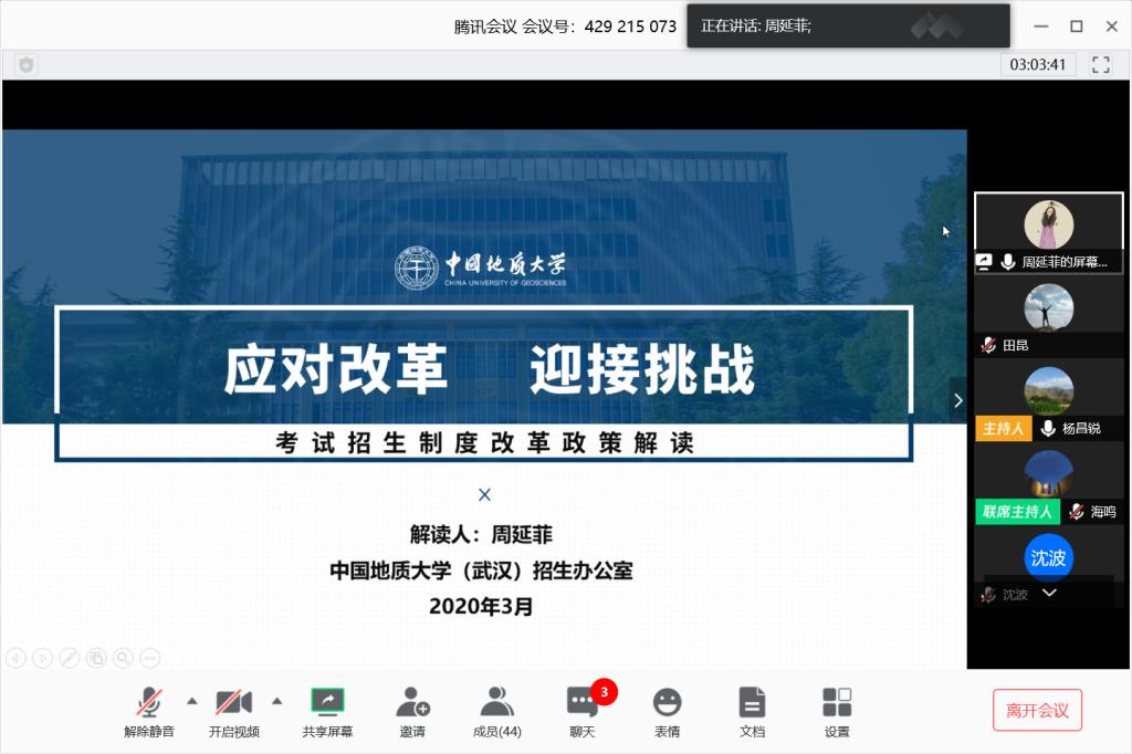 集团招生办公室主任周延菲应邀出席会议。她讲解了新高考和传统高考的区别,详细阐述了高考改革的方向和政策,提出高考改革给高校带来的挑战主要有两个方面,一是科目组合的不同给生源结构带来的变化;二是报考录取方式的不同给生源质量带来的变化。