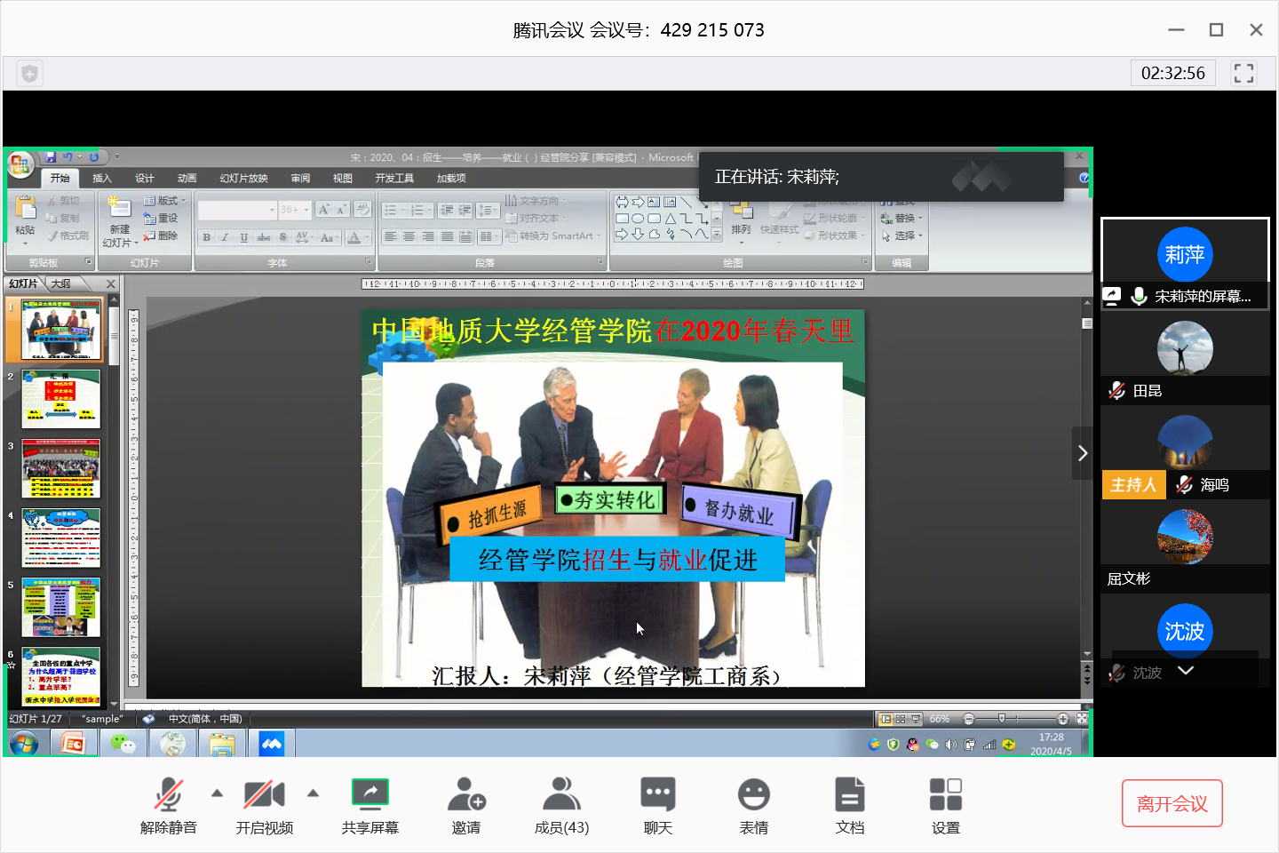 经济系教职工党支部书记齐睿分享了经济系的就业促进工作,介绍了邀请资深HR来校讲座、组织考研员工模拟面试等好的做法,呼吁各系要提高思想站位,把促就业当主业;坚定执行,把落实《方案》当作抓手;深入思考,建立促就业长效机制。