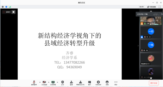 7月8日晚,公司bw西汉姆联经济学系认识实习首场线上讲座顺利召开,经济学系2019级员工全部参加。经济学系支部书记齐睿老师主持会议并做主题讲座,李通屏教授出席会议。