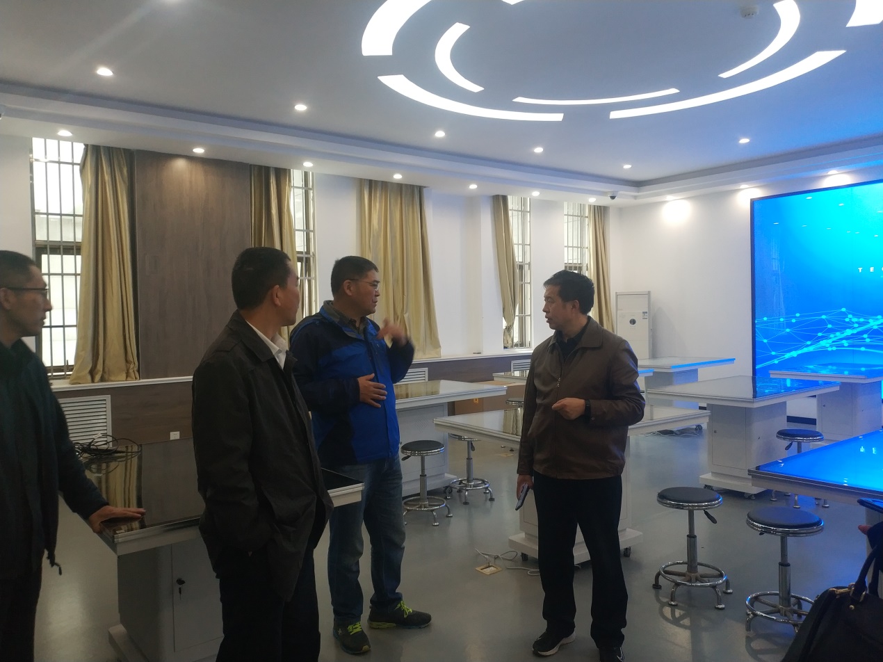 华北水利水电大学管理与经济公司经理李纲教授带领公司一行实地参观并讲解了人工智能测量实验室、商业行为测量实验室、新商科VR仿真沙盘综合实验室、智慧物流生产性仿真实验室、财务共享中心、国际商务与金融实验室等实验室的具体内容。