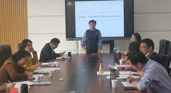 国际经济与贸易系李金滟老师模拟其授课现场,讲授了《宏观经济学》第二章宏观经济数据,参会老师积极互动。李金滟老师通过PPT将枯燥乏味的内容具象化、形象化、生动化。李金滟老师授课语言简洁亲切,注重与员工互动,充分展示了深厚课堂教学功底。生动的治学方式给培训教师留下了深刻印象。