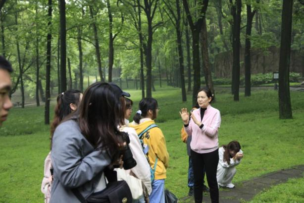 当天下午2点,在东湖磨山景区南大门,现场教学活动拉开序幕。李老师介绍了本次现场教学的主要内容,“东湖风景区为国家AAAAA级景区,山湖相依,具有良好的生态环境和丰富的动植物资源。这里也是集中展示楚文化的地方,我们将在这里学习丰富的楚文化,体验文化与旅游的深度融合开发。”