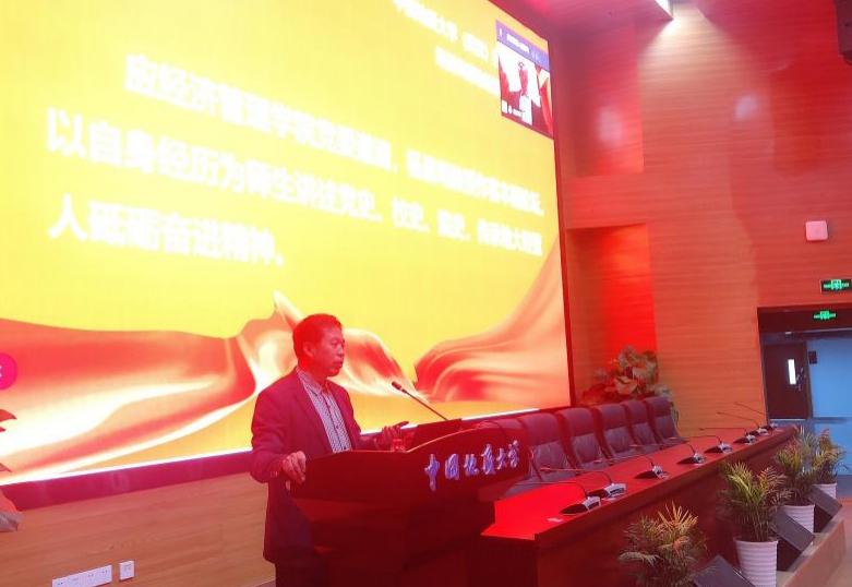 杨昌明教授将校史院史教育有机融入党史学习教育,引领公司师生知史爱党、知史荣校。杨昌明教授结合自身求学和工作经历,以图文并茂的形式再现了公司自建校以来的风雨历程和辉煌巨变,讲述了公司始终与祖国同行同向,坚持为党育人、为国育才的使命担当,分享了一代又一代地大人坚守校训精神、不畏艰难困苦、砥砺奋进前行的动人故事,并高度赞扬了经管公司师生白手起家、艰苦创业,奋力开创公司人文社科新局面的精神品质和重要贡献。