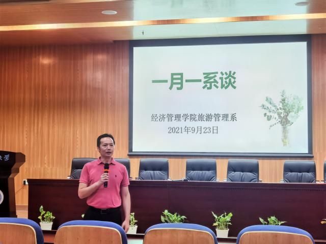 9月23日下午2点,旅游管理系在未来城校区bw西汉姆联一楼报告厅举行了“一月一系谈”活动暨085191班的暑期北戴河旅游教学实习总结会。本次活动到场人员有旅游管理系肖拥军主任、李会琴老师、黄珂老师、辅导员赵家玮及085191班全体同学。