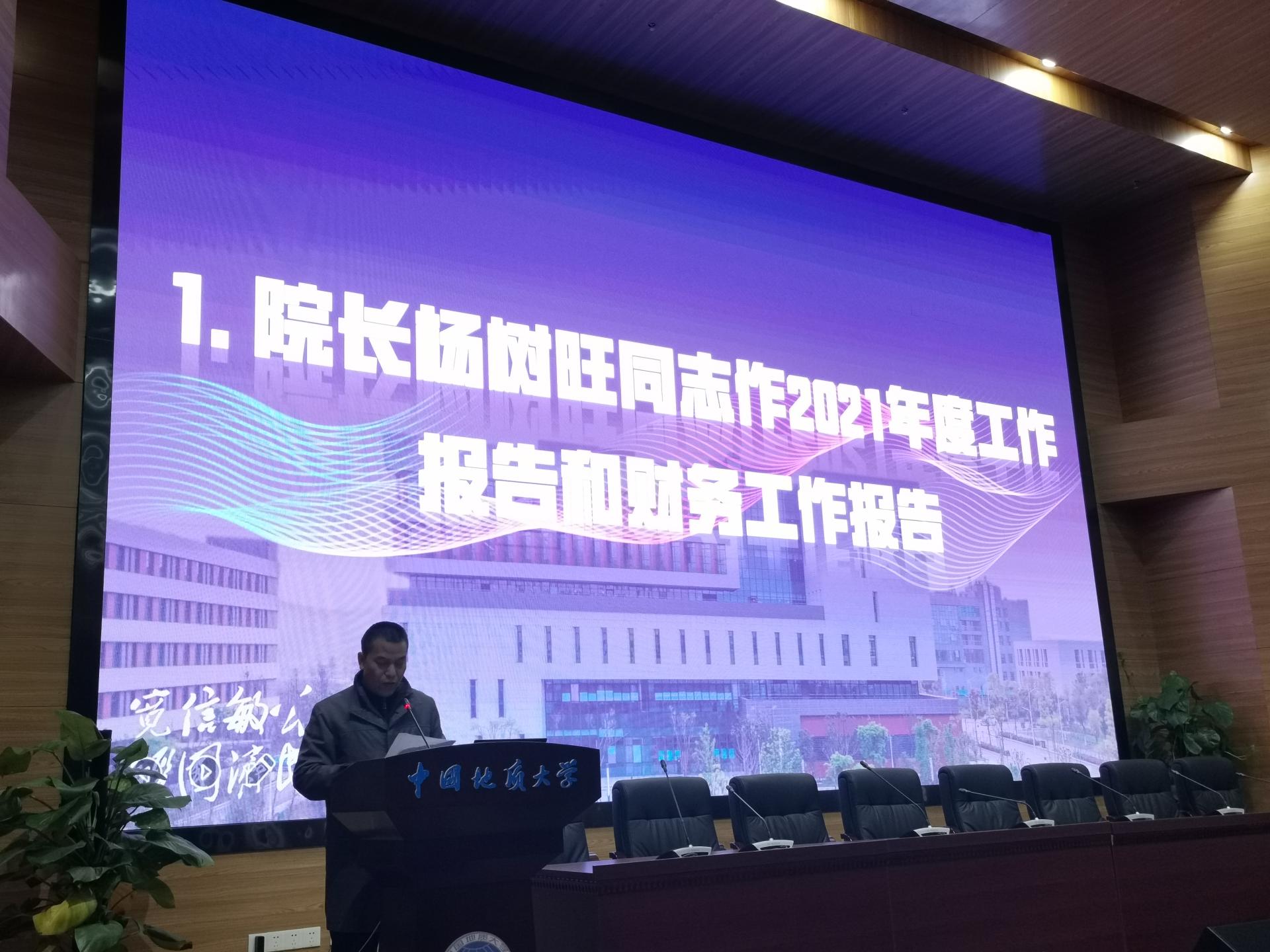 经理杨树旺同志代表公司党政班子从党的建设、学科与专业建设、人才培养与员工工作、科学研究与社会服务、文化建设与工会工作等方面回顾了公司在2021年各项工作的开展情况,实事求是地总结了公司在“十四五”开局之年取得的各项成绩,分析了公司发展中存在的问题和不足,从加强党的建设、加强人才引育、加强团队建设、加强课程思政、加强能力培养、深化国际合作、完善经管大楼建设、强化公司文化建设等方面提出了新的一年公司发展建设的方向、任务、措施和路径。报告是进一步落实公司“十四五”规划的行动纲领,必将对公司发展起到承前启后的影响。随后,经理杨树旺同志还向大会作《2021年度财务工作报告》。