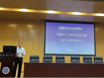 中南财经政法大学工商管理公司副经理胡川教授作了题为《抓创新、促融合—中南大工商公司国家级一流本科专业建设的探索与实践》的报告。该公司8个专业国家级一流全覆盖。指出,始终坚持本科教育中心地位,从思想观念、政策激励、条件保障等不同方面切实把“以本为本”落到实处。公司和公司资源优先服务于本科教育,教师的精力优先聚焦于本科教育,公司的核心竞争力和教学质量优先在本科教育显现。以社会需求为导向,不断优化专业结构布局,开设“数智化创新管理”微专业。持续深化课堂教学改革,“以赛促教,以赛促改”,重视青年教学奖比赛,思政课教学比赛,提升教室教学能力。创新本科培养模式,开展“五位一体培养”。公司开启了“以国际认证为抓手全面提升公司国际化水平”的“国际化2.0”,建设 “立足中南,面向世界”的“经法管融通的一流商公司”,以国际认证为抓手,对标专业认证标准,继续实施专业内涵建设,不断提升专业建设和人才培养质量,做好迎接国家级一流本科专业建设点验收的准备工作。