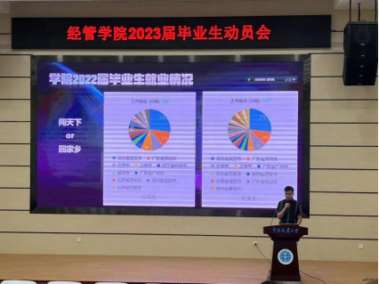 张弛以公司2022届毕业生就业情况为题,从考研、求职以及出国出境三大毕业去向展开介绍,把毕业生的就业地区、薪资水平、行业分布等数据以图表形式展示出来以供参考。在突出升学难、就业难的同时,他鼓励备战考研的同学们百尺竿头更进一步,利用复习间隙参加几场招聘会,在劳逸结合中,让自己抓好秋招机遇,多一份选择。