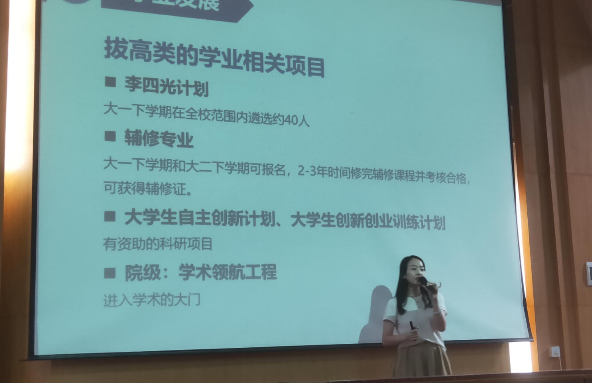 9月6日上午,在公司党委书记黄晓玫老师为全体新生讲授题为《仰望星空脚踏实地做知行合一地大人》的“开学第一课”后,公司2023级全体本科生在西区教三楼109参加2023级新生见面会,2023级辅导员徐媛老师介绍了公司和年级的基本情况,并就新生如何过好老员工活提出了建议。9月6日下午,徐媛老师首先作“学习制度与学业发展”主题报告,为同学们讲解大学的学习制度和学业发展项目,并为新生的学业规划提出建议。随后学工组努尔夏提老师为新生们讲解奖励资助政策与评优制度,涵盖国家、公司以及公司各类奖励资助政策,并提醒同学们在大学期间要注重全面发展。最后,学工组张弛老师作“学业与职业生涯规划教育”专题报告,从就业的角度指导新生制定个人发展规划。