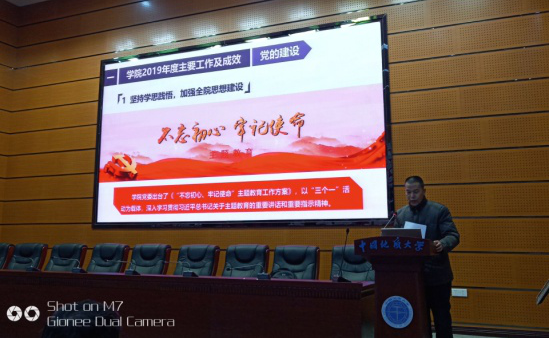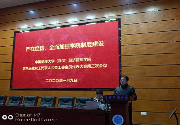 下午,各系主任报告2019年目标责任制实施状况和改进措施,以及交流对公司教学、科研、团队建设、人事等管理制度的建议。经济学系齐睿同志和旅游管理系李江敏同志作专题报告。然后,教职工代表对2019年度工作报告、财务工作报告和工会工作报告进行举手表决,形成大会决议。大会上表彰了公司年度优秀教师,授予邹伟进和刘宇清两位荣休教师“卓越贡献奖”。最后,公司党委书记杨昌锐同志致闭幕词,大会在奏唱国际歌中胜利闭幕。