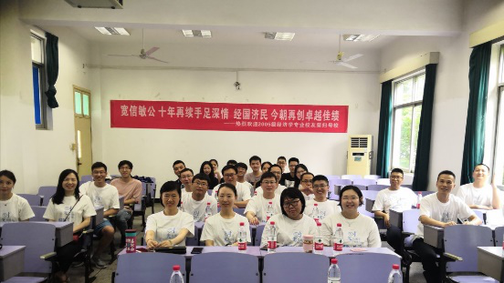 当天下午,经管地子归社团引导101051班全体员工参观校园,在公司大门、弘毅堂、操场、隧道、教室等留有青春印记的熟悉场景合影留念,并在教三楼203教室开展“十年再续手足深情 今朝再创卓越佳绩”主题班会。员工们齐聚一堂,观看大学时光回忆录,分享他们毕业后的工作状况、家庭生活和内心感触,字里行间里表达对母校的思念,热泪盈眶怀念曾经的师生、同学情