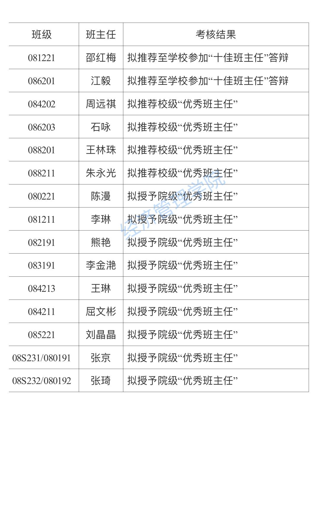 根据《关于开展bw西汉姆联班主任工作考核的通知》相关要求,公司对全院2019级-2023级所有本科生班级所聘任的班主任进行了年度工作考核,经班主任自评、员工满意度测评及公司评审。现将考核优秀名单公示如下(按班级序号排序):