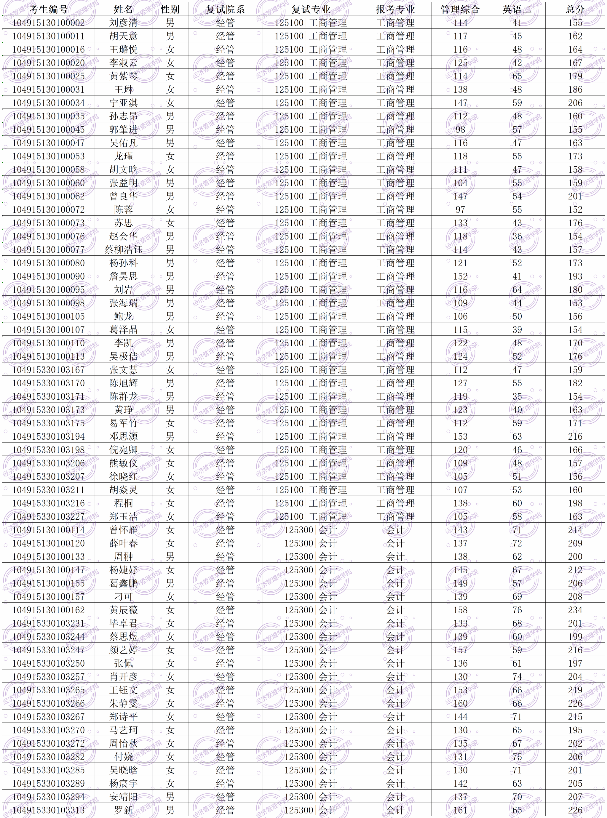 附件一:bw西汉姆联专硕(MBA、MPAcc)复试名单