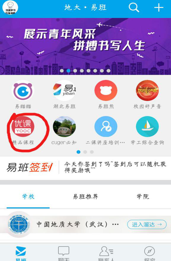 第一步:下载易班APP,进入易班系统,然后点击精品课程(见下图示意)