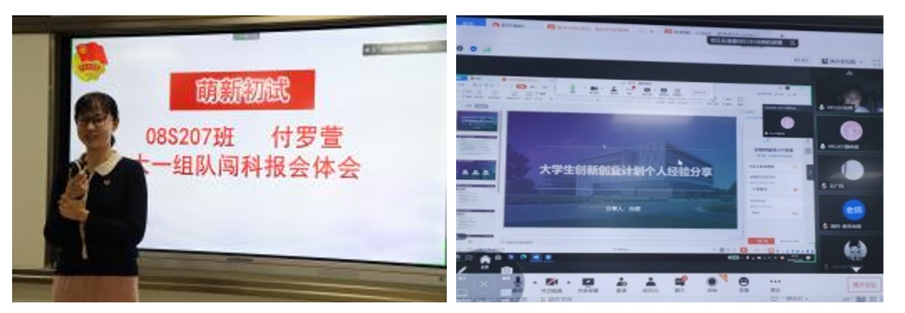 (左)本班付罗萱同学谈参赛体会 (右)085181班孙辉学长线上经验分享