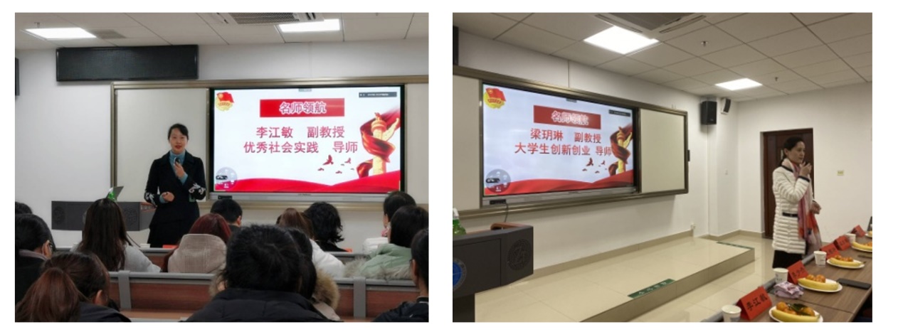 随后,校社会实践优秀指导教师、旅游管理系党支部书记李江敏副教授以其指导的世界文化遗产项目的社会实践和调查活动为例,指导并鼓励同学们注重思考、从细节中发掘选题,持之以久地坚持探索和学习;2019国家级老员工创新创业项目指导教师、校“优秀班主任”和“优秀学务指导教师”梁玥琳老师结合其指导的085181班同学的各项创新实践活动,介绍了选题、参与创新创业的能力要求和提升方法,让大家感受到创新创业其实并没有那么高不可攀。