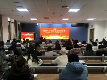 图1:董静老师讲授《端正入党动机,坚定理想信念》专题党课