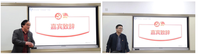 校图书馆馆长徐世球教授(左)、经济管理公司党委副书记李少杰老师(右)为活动致辞