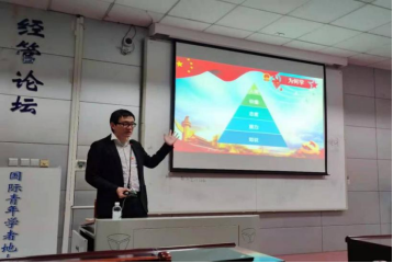 齐睿老师为同学们分享了经济系教师如何为学科发展的奋斗故事、经济系优秀毕业生代表的实践经历和择业选择,用生动的事例为同学们展示了身边榜样如何“力己行”。齐睿老师总结道:作为经管学子,我们应该学党史、做“经鹰”;志高远、行笃实;甘奉献、勇担当;勤学习、善思考。习近平主席说:“我将无我,不负人民。”对于老员工来说,就是要以“我将无我,不负青春”的情怀服务社会、奉献国家。