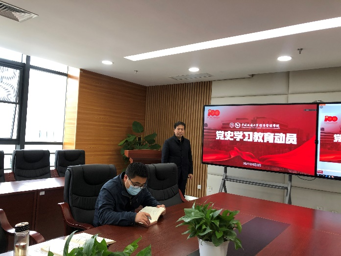 在公司党史学习教育大会的部署下,公司员工党史学习教育动员大会于当日下午在未来城校区经管楼报告厅举行。公司党委副书记李少杰、团委书记田昆、全体辅导员、各员工党支部书记、团学研干部以及员工班级代表参加会议。公司党建工作辅导员赵家玮讲解了《公司关于在全体员工党支部和员工党员中深入开展党史学习教育的通知》内容。公司公司党委副书记李少杰作动员讲话并为员工班团代表以及党团校学员代表授旗。李少杰指出,各员工党支部要统一思想,深入谋划,以高水平的组织保障高质量的效果,塑造新时代经管学子的优良作风;要坚持正确导向和鲜明主题,把学习习近平新时代中国特色社会主义思想贯穿全年,准确把握党的历史发展的主题和主线、主流和本质,树立正确的历史观、民族观、国家观、文化观;更要以党史学习教育贯穿和引领年度员工工作,做到党团班建一体推进、师生校企结对共建、学研查改贯通执行、知行合一有效转化。