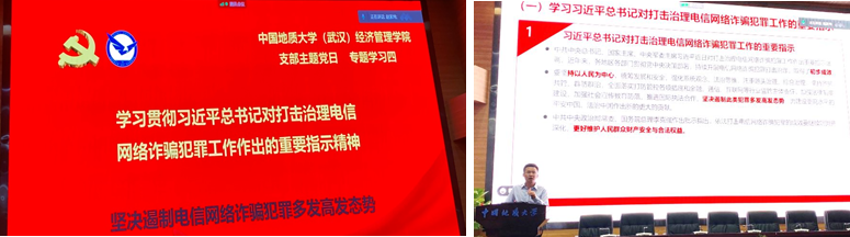 随后,院直党支部党员、院学工组专职辅导员赵家玮同志就当前全国上下正在开展的“防诈骗安全警示教育”活动,带领师生一起学习了习近平总书记对打击治理电信网络诈骗犯罪工作作出的重要指示精神,然后宣讲了公司和公司的系列部署和行动,通报了各学系和员工班级开展警示教育活动的进展情况,并要求和倡导全体师生要自觉扛起防诈防骗的个人主体责任,提高警惕,加强防控,落实措施,为创建零诈骗发生率的平安校园作出贡献。