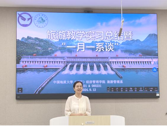 最后,李江敏老师对本次活动进行了总结。她强调了旅游管理专业在新时代背景下的使命和责任,以及优化职业规划与提升专业素养的必要性。李老师向大家通报了旅游管理系最近的发展动态,勉励大家在相关平台与项目的基础上,以学业为中心,合理高效开展各项学习、科研、社会实践等活动。