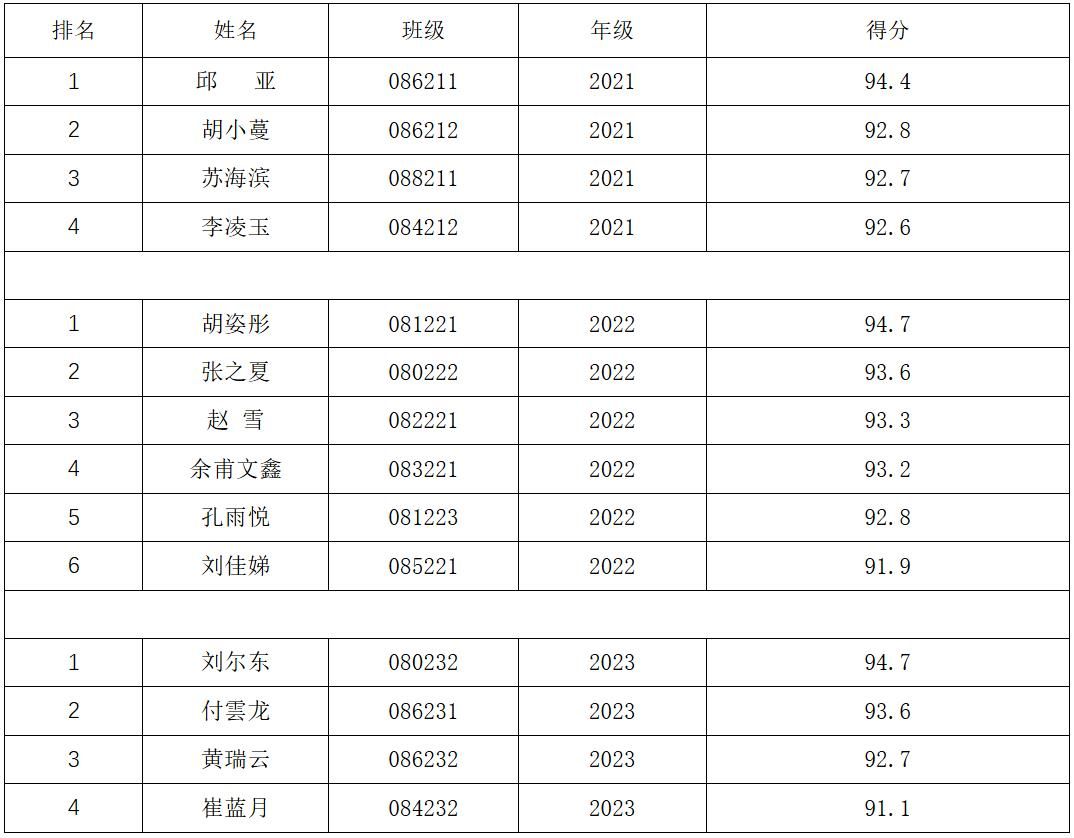 附:2024年本科生国家奖学金推荐人选答辩成绩