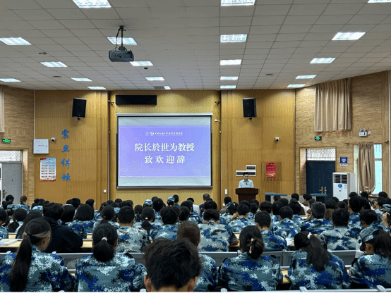 於世为经理代表公司热烈欢迎2025级新生,祝贺大家圆满完成军训。他简要回顾了公司四十年发展历程,阐述了“宽信敏公、经国济民”的院训内涵,并寄语新生胸怀家国、思行合一、修身立德,努力成长为有深度、有锐度、有温度的经管人才。於经理还以杰出院友为例,勉励同学们以优秀前辈为榜样,珍惜时光、奋发成才,努力成长为服务国家与社会发展的栋梁之才。