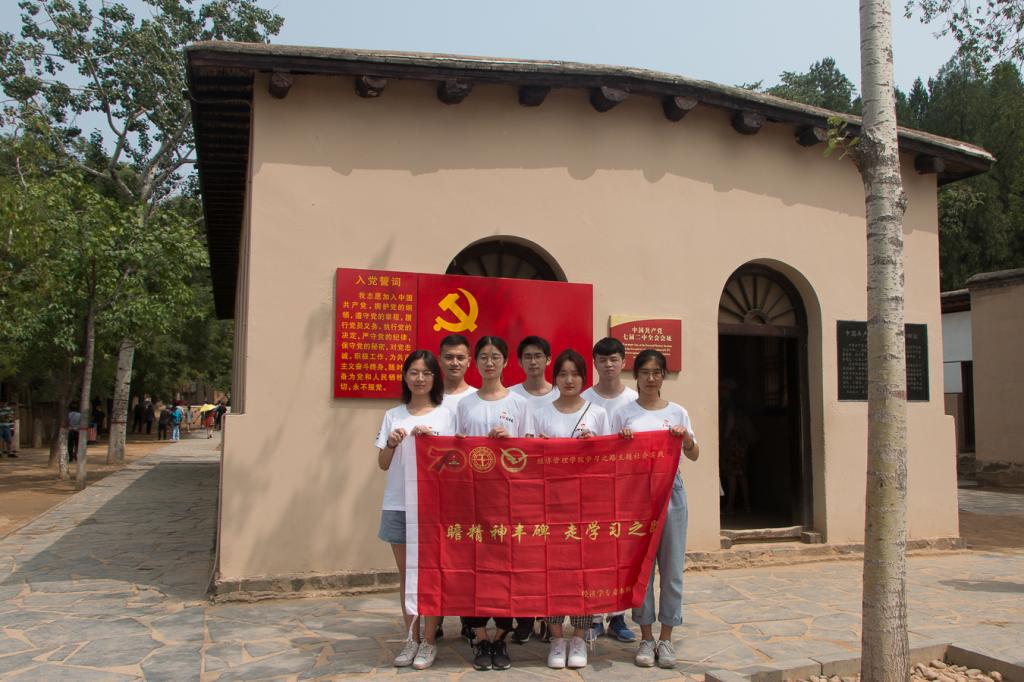 在中共中央旧址所在地,队员们参观了毛泽东、朱德、周恩来、刘少奇、董必武、任弼时等领导同志的故居以及七届二中全会会址,进一步了解了中国革命走向伟大胜利的历史进程。在七届二中全会会址门前,队员们面向党旗重温入党誓词,并合影留念。