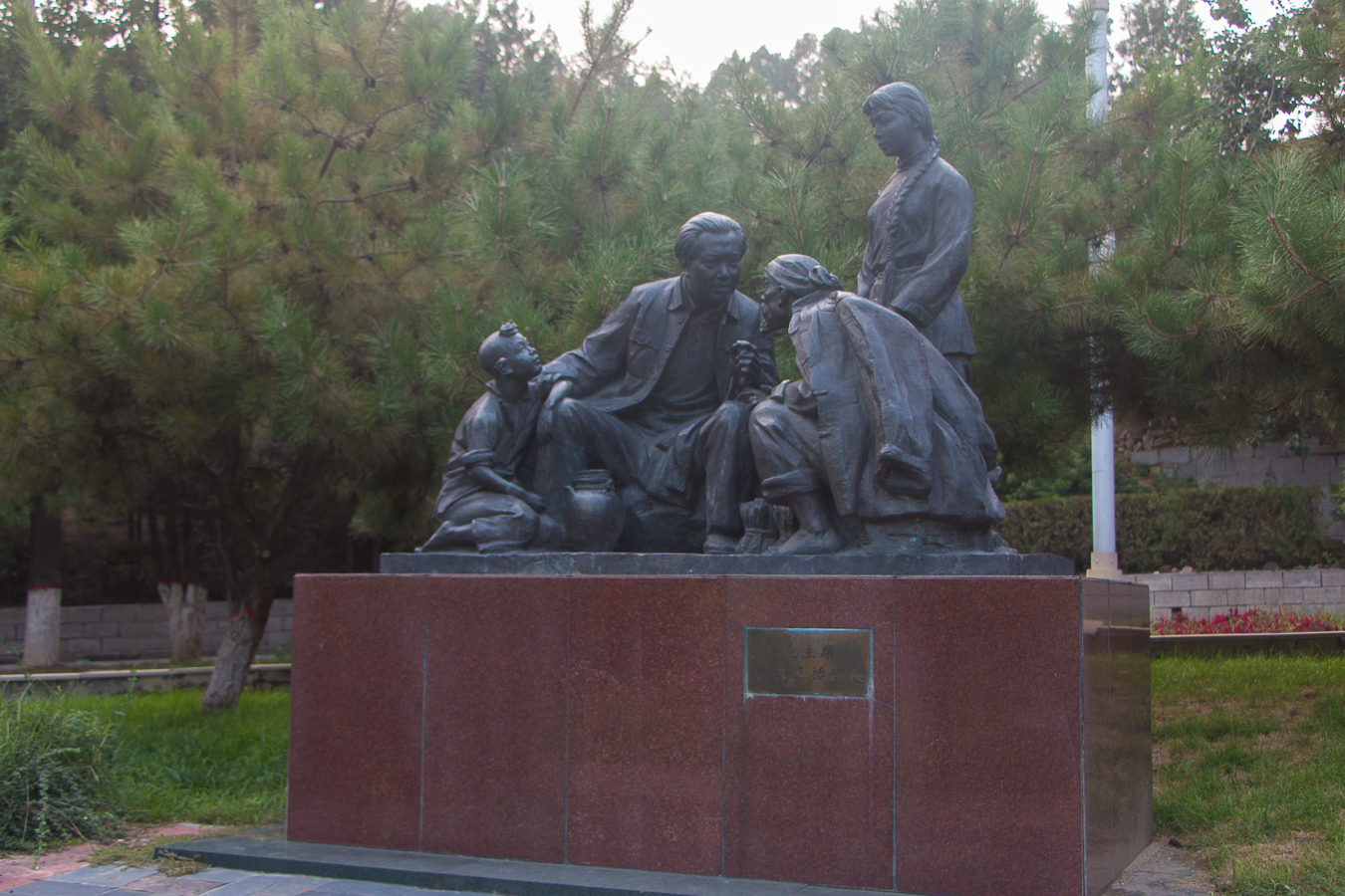 领袖风范雕塑园是一所寓雕塑于园林的综合性建筑。园内树木苍翠,鲜花盛开,映衬着毛泽东、朱德、刘少奇、周恩来、任弼时五位书记的风范铜雕。栩栩如生的雕像,使队员们仿佛亲身感受到领袖风范,如“毛主席教农民插稻秧”,刘少奇深入农户进行土改调查的“一家人”,从中我们深刻理解了“密切联系群众,向群众宣传党的主张,遇事同群众商量”的党员义务。