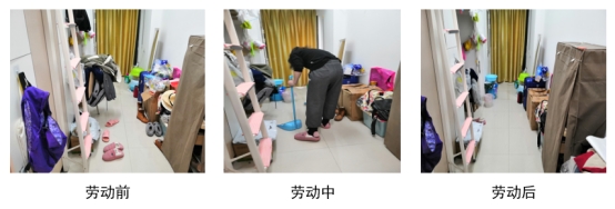 在班级的宣传和组织下,在舍长的安排和带动下,各班以宿舍为单位开展了宿舍卫生清扫活动。2021级应用经济学硕士班同学表示,通过劳动日活动的锻炼,大家明白了无论做什么事情,都要脚踏实地,持之以恒,不达目的誓不罢休,劳动如此,学习如此,工作亦如此,只有认定目标,脚踏实地,才能“绳锯木断,水滴石穿”,在以后的人生道路上,也会努力去正视一切挫折,不屈不挠,勇往直前。2021级资产评估专硕班同学讲到“一屋不扫,何以扫天下”,这样的劳动日活动让大家养成了注重细节、踏实肯干的作风,潜移默化的影响学习和工作,更有寝室树立起“室洁书香有梦亦有志”的寝室室风。