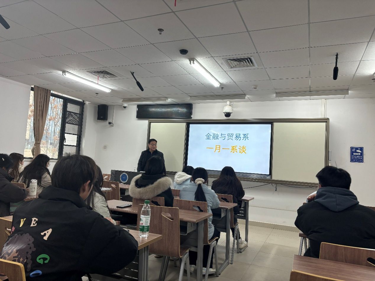 接下来,系主任白永亮教授结合自身多年的教学和研究经验,从大二员工的实际需求出发,详细分析了当前金融与贸易专业领域的就业形势和发展趋势。他指出,大二是大学阶段承上启下的关键时期,同学们应当在学习专业知识的同时,注重实践能力的培养,积极参与实习和社会实践活动,更加明确自己的学习目标,合理规划时间,平衡好学业与实践,为未来的职业发展奠定坚实基础。