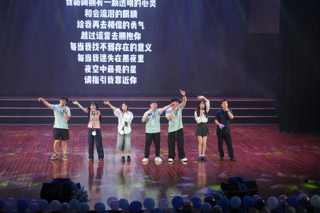 努尔夏提老师、徐媛老师、蔡杨老师、陈静老师和张弛老师登场献唱《突然好想你》,熟悉旋律瞬间点燃全场情绪。台上台下齐声合唱,不舍之情在歌声中流淌。歌曲尾声,辅导员们真挚的毕业祝福,更是为这场青春告别仪式,添上了最温暖回忆