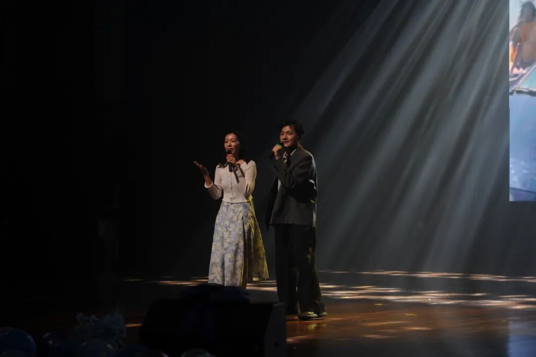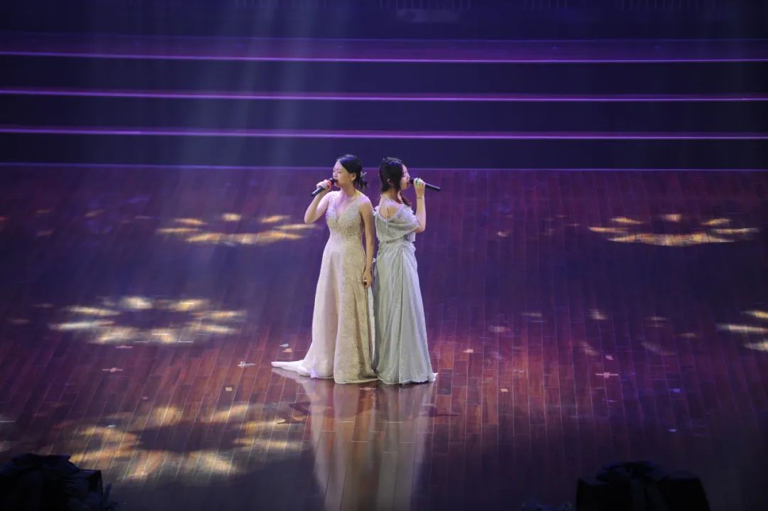 毕业生乐怡珺与马歆怡携手登台,深情唱响经典曲目《雨蝶》。二人的歌声婉转悠扬、情感饱满真挚,娓娓道来离别的心绪。她们动人的旋律与深情的演绎引发全场共鸣,掌声如潮。