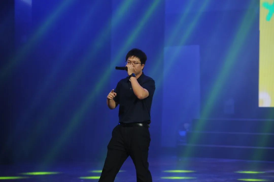 毕业生辅导员蔡杨带来即兴B-box表演。B-box的节奏如鼓点般震撼,其多变的韵律瞬间就点燃了全场气氛。蔡杨老师通过指尖与口腔的巧妙配合,演绎出了一番独特的韵律,台下同学热情高涨,掌声、欢呼声此起彼伏,将毕业的热烈氛围推向了新的高潮。