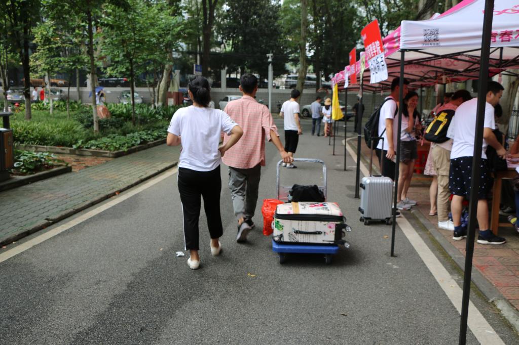 8月31日上午,随着第一辆迎新大巴驶入校园,公司迎新工作正式开始。几位新生家长在接车志愿者的引导下,手提肩扛着大包小包前往公司迎新点,工作人员见状立刻将公司新购置的“爱心手推车”派上用场,并安排志愿者引导新生一行前往宿舍,一切从解决员工实际困难出发,真正做到“急同学之所急,想同学之所想”。