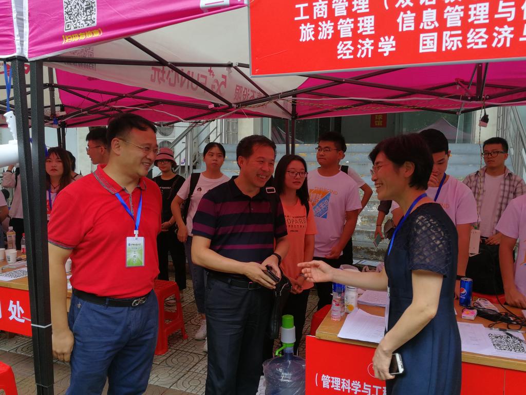 迎新过程中,公司党委书记黄晓玫、学工处处长邬海峰等一行来到公司迎新点视察指导工作,黄晓玫书记与公司领导及奋战在迎新一线的辅导员一一握手,了解报到情况,赞许了工作人员和新生们的精神面貌,对公司迎新工作给予高度评价。