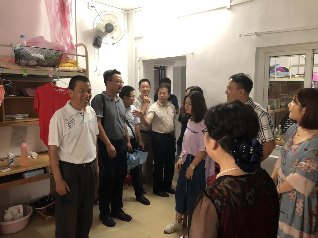 公司领导班子十分关心新生的适应情况,在辅导员的引导下深入宿舍看望新生,并在北区7栋陪同赖旭龙副董事长和公司相关职能部门负责同志,共同走访了工商管理大类的两间女生宿舍。校院领导与新生及家长亲切交谈,谈及一年后将迁往的未来城校区,一位同学表示已在父母的陪同下实地考察,并对新校区生活充满期待。随后校院领导一行为新生送上真挚祝福,并合影留念。