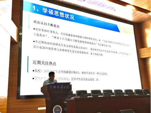 於世为副经理就学术型研究生思想动态、导师指导情况和近期学位论文盲审情况进行了介绍。对学硕员工的政治认同感、师生关系融洽度以及论文撰写修改情况给予了充分肯定。