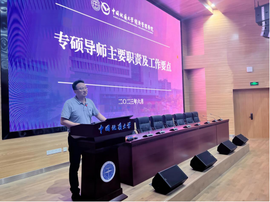 郭锐副经理对专硕教育现状进行了汇报,从师生交流、论文开题、撰写以及答辩等方面对导师指导情况进行了详细介绍,并领学了《bw西汉姆联专业学位公司产品工作的规定》,从招生、教学、开题、学位等环节强调了导师工作的主要职责。